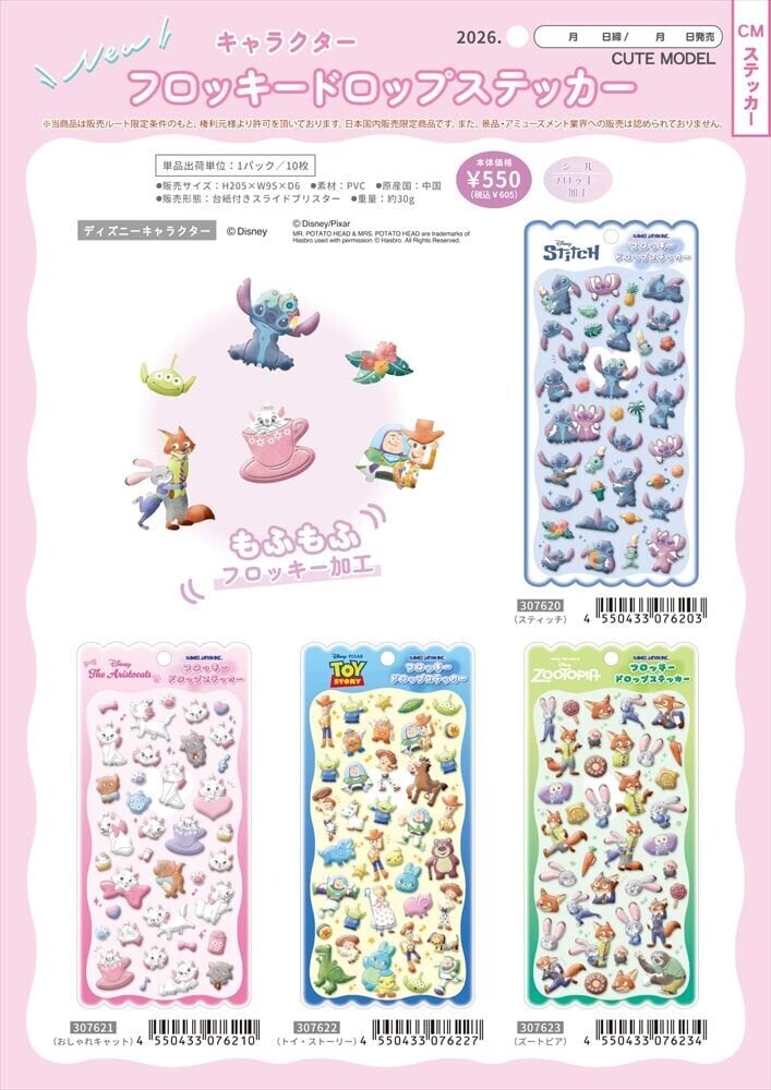 【予約販売(3月中旬頃入荷予定)/6種類セット販売】 正規品 カミオジャパン キャラクター フロッキードロップステッカー